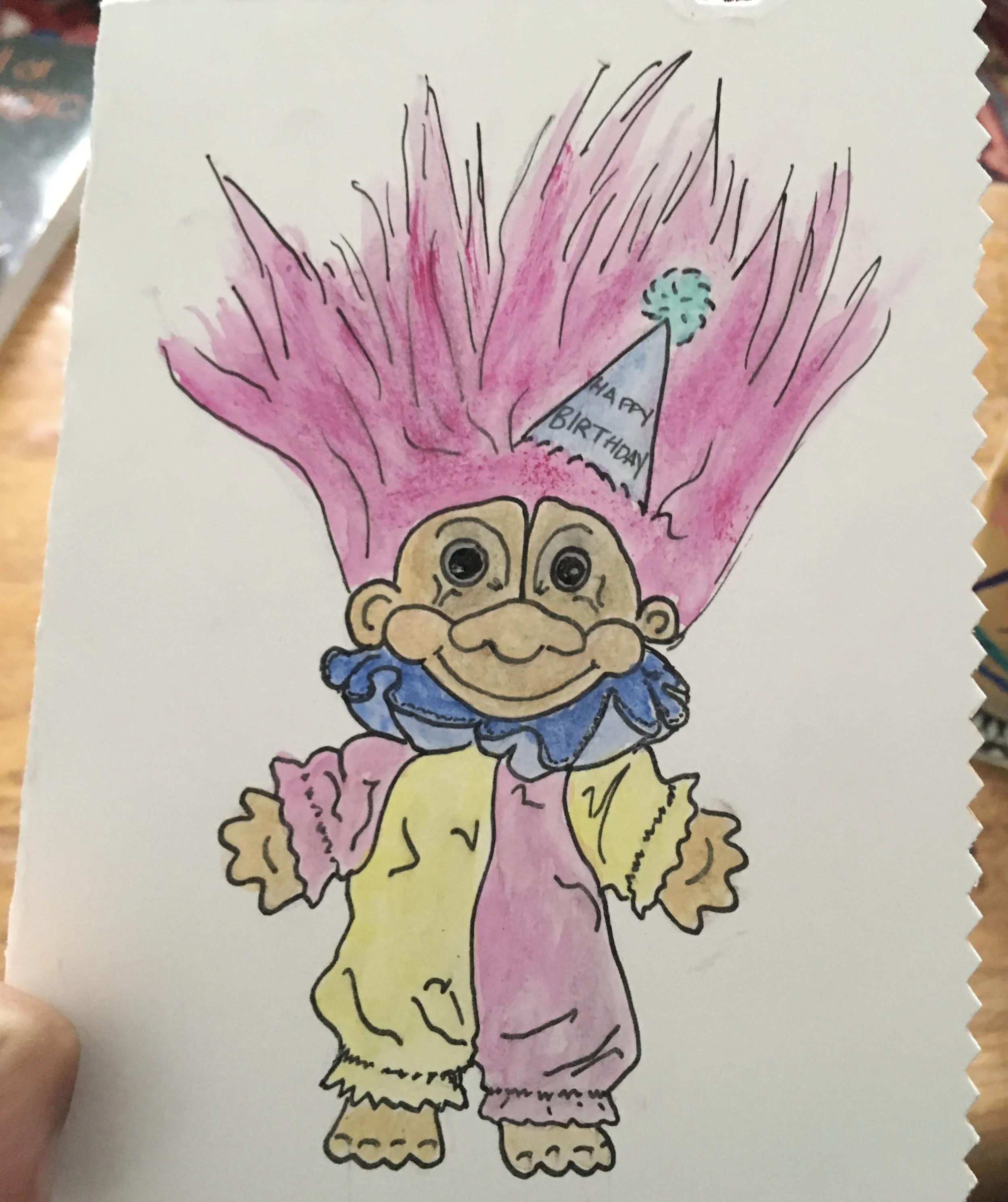 birthday troll card (2018) watercolor and pen